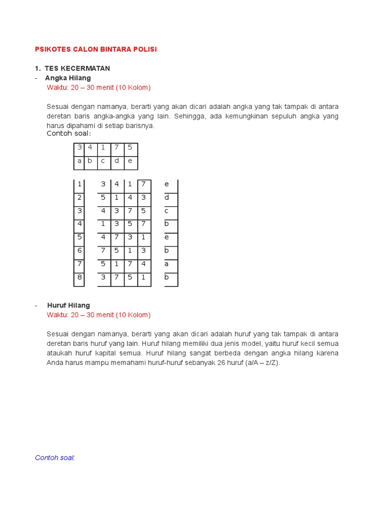 Persiapan untuk lolos taruna akademi kepolisian terbaru. Tni ad 2020 psikotes tni polri tes psikologi adalah tes yang selalu ada dalam setiap penerimaan tni,polri,sekolah ledinasan,maupun melamar kerja,ada beberapa materi seperti menggambar pohon,menggambar orang,pauli/hitung koran,warteg,dsb. Contoh soal simbol hilang tes ketelitian psikotes polri bimbel polri. 20201203 download soal psikotes tni dan jawabannya pdf gratis. Bahan psikologi untuk tes masuk tni.